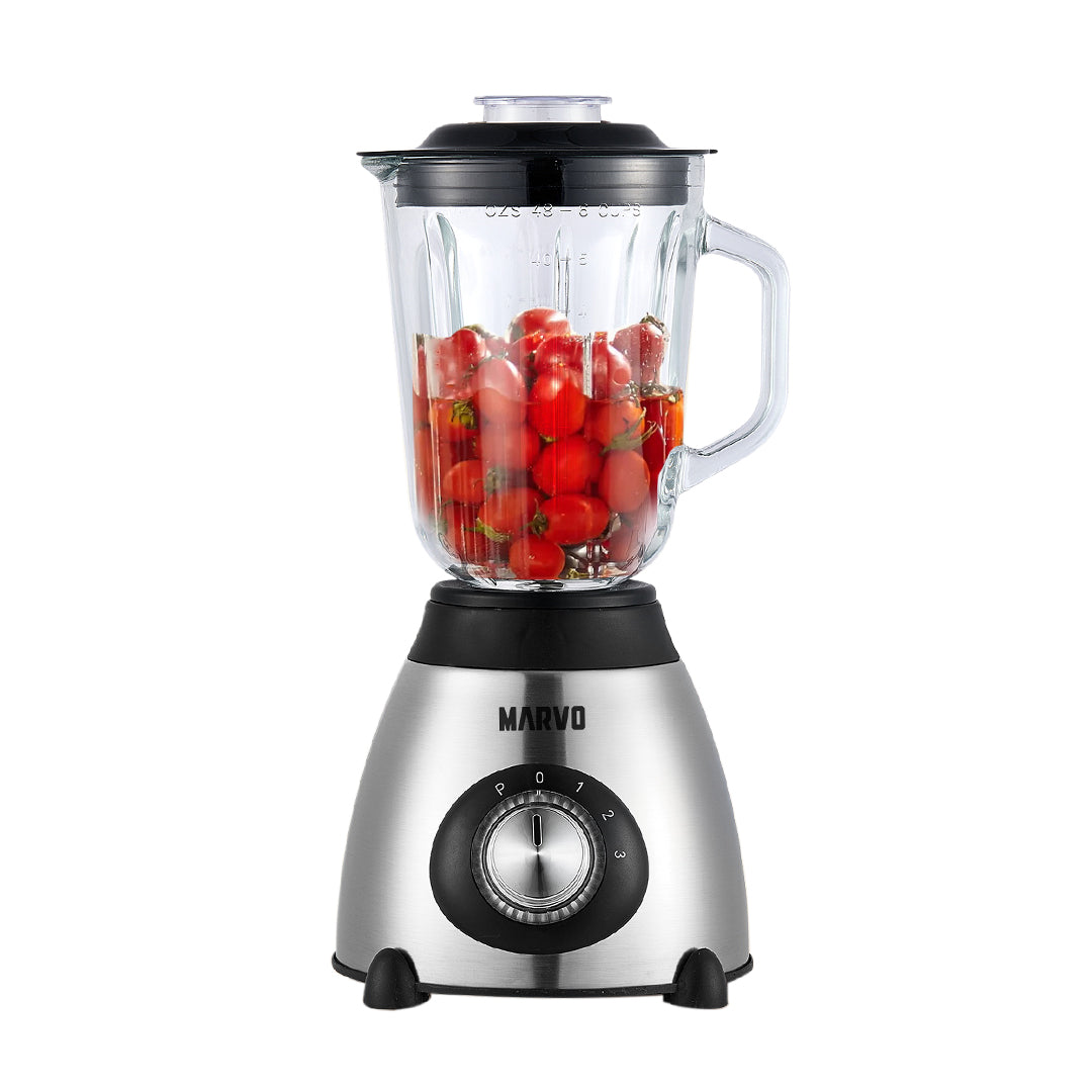 Licuadora Marvo plateada baso de vidrio
